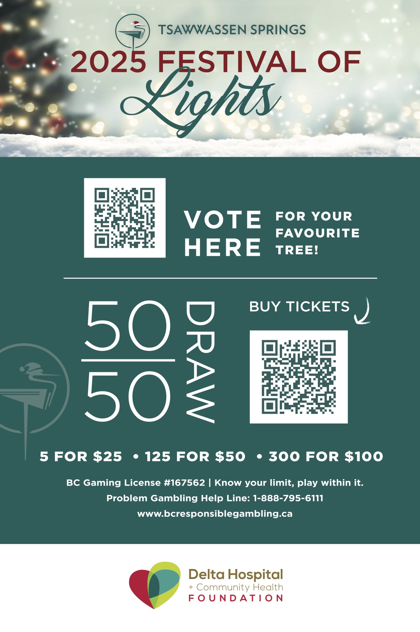 50/50 draw runs Friday, November 28th at 9:00am to Sunday, January 4h at 11:59pm. Draw to take place Monday, January 5th at 12:01pm.