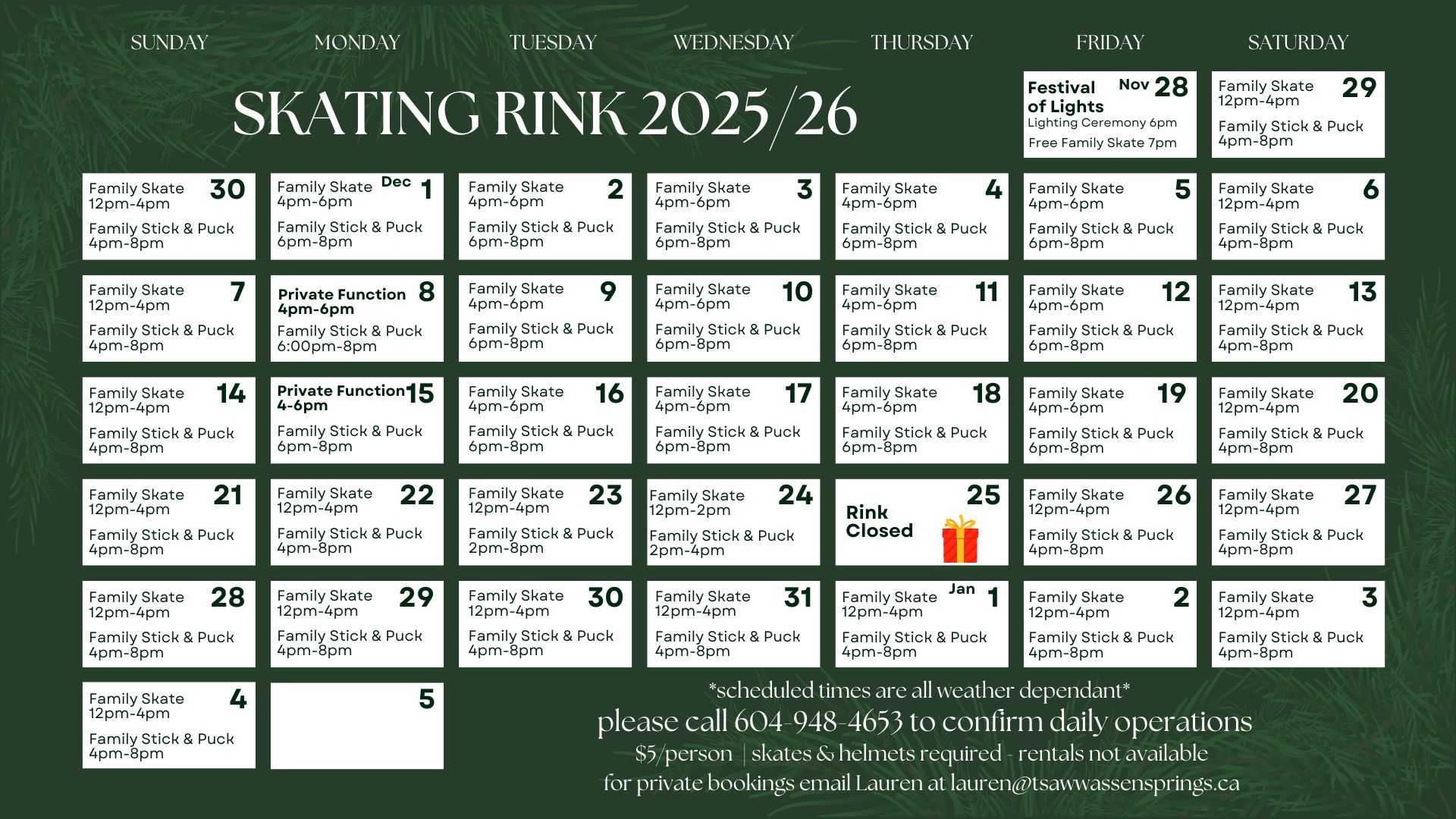 Cost $5 per person | skates and helmets are required, rentals not available.